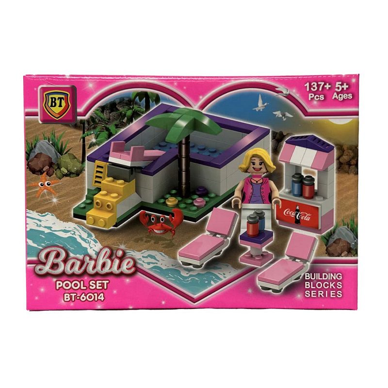 لگو استخر باربی 137 قطعه کد BT6014 از سری لگو های دخترانه شرکت BT میباشد که از کیفیت و قیمت مناسبی برخوردار است. این لگو اسباب بازی دارای 137 قطعه لگو به همراه یک عدد آدمک لگویی و نقشه راهنمای ساخت بوده و برای رده سنی بالای 5 سال مناسب میباشد. لگو ها یکی از جذابترین اسباب بازی ها برای کودکان و حتی بزرگسالان بوده و همچنین برای تقویت هوش و خلاقیت بسیار مفید میباشند.